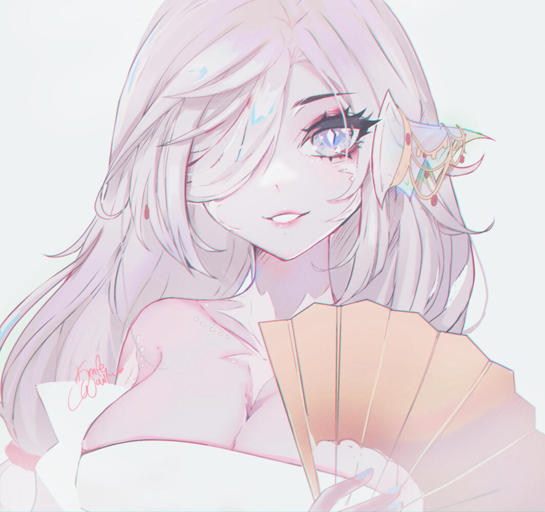 features - pearl scales, delicate beauty, soothing aether - heavy water aspected, doll-like, sultry & slightly clouded gazecurrent status - oh no oh fuck oh shit now arson what next